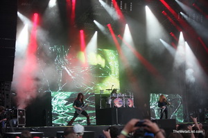 SLAYER! Sixteen songs. No! Sixteen thermonuclear explosions - so it will be more correct. No encore. No speech. Just dazzling and too kind smile of Tom Araya which is more similar to Santa recent years. Kerry King either looking at the floor or standing with his back to the audience. 4 strong bearded men with their music that kills you. SLAYER performed 4 hit songs from "Seasons in Abyss" as well as 2 from "South of Heaven". Of course there were "Angel of Death", "Postmortem" and "Raining Blood". But the main feature of this year was an accent on the earliest period: five songs of sixteen were created in period 1983-1985, before the band released "Reign in Blood" - number one CD in thrash metal throughout the years. Honestly it wasn't the best SLAYER performance but it was still magnificent as ever.