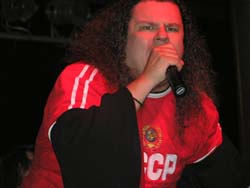 Ну а теперь о самом концерте. Первое на что могли обратить внимание зашедшие в зал – огромные белые кресты, поставленные на сцене, именно на их фоне проходило выступление группы. Концерт начался с небольшим опозданием, на сцену «пробрались» музыканты, барабанщик занял свое место сверху, и без всяких Интро заиграли мощнейшую открывающую композицию с последнего альбома «Black Dwarf». И вот на сцене он…Тучный, уже не юный «безумный монах» Messiah Marcolin в своей незабвенной черной рясе. Эта композиция по стилистике являющаяся необычайно утяжеленным хэви блестяще открыла этот концерт. В целом упор в этот день делался на последний альбом и на Nightfall. Следующей песней звучала Mirror Mirror, а далее песня с самого первого альбома группы Solitude – нельзя не отметить, что в исполнении Марколина песня звучит более колоритно. Звучат «Copernicus» и скоростная «Born In A Tank» - ещё две песни с последнего альбома. Стандартная ситуация для СДК МАИ – проблемы со звуком в первые 10-15 минут, на этих песнях звук уже окончательно выравнивается, в этот день это особенно сложно, Марколин обладает сильнейшим вокалом, но в то же время и музыканты играют очень тяжело, крайне редко с таким звучанием гитар в металлической музыке сочетается чистый вокал, CANDLEMASS – исключение.