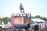 RAMMSTEIN! There was only one act at that stage due to huge amount of huge amount of scenery and pyrotechnics. Long intro and the reign of fire was declared. Till Lindemann at the top of the stage began the performance in his pink coat. Already the second song was accompanied by pillars of fire and fireworks, next to it was Keine Lust and everything was drowned in the smoke. During the bridge of "Sehnsucht" the stage turned to island of red fire. Surely “Feuer Frei!” forced to sober up everyone. The heat from the stage was intense and could be felt 50 metres away. Dressed as sadistic chef Till mocked poor keyboardist who was planted in a giant pot during "Mein Teil". But Christian Lorenz definitely survived and without any problems began to play intro to wonderful ballade "Ohne dich".